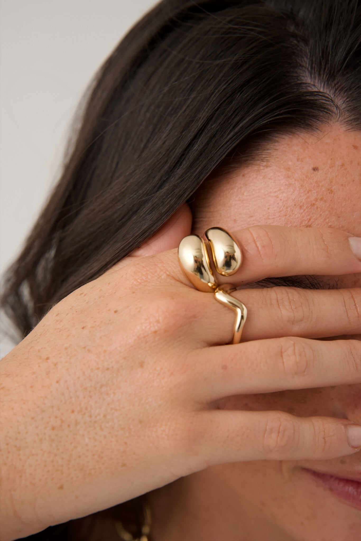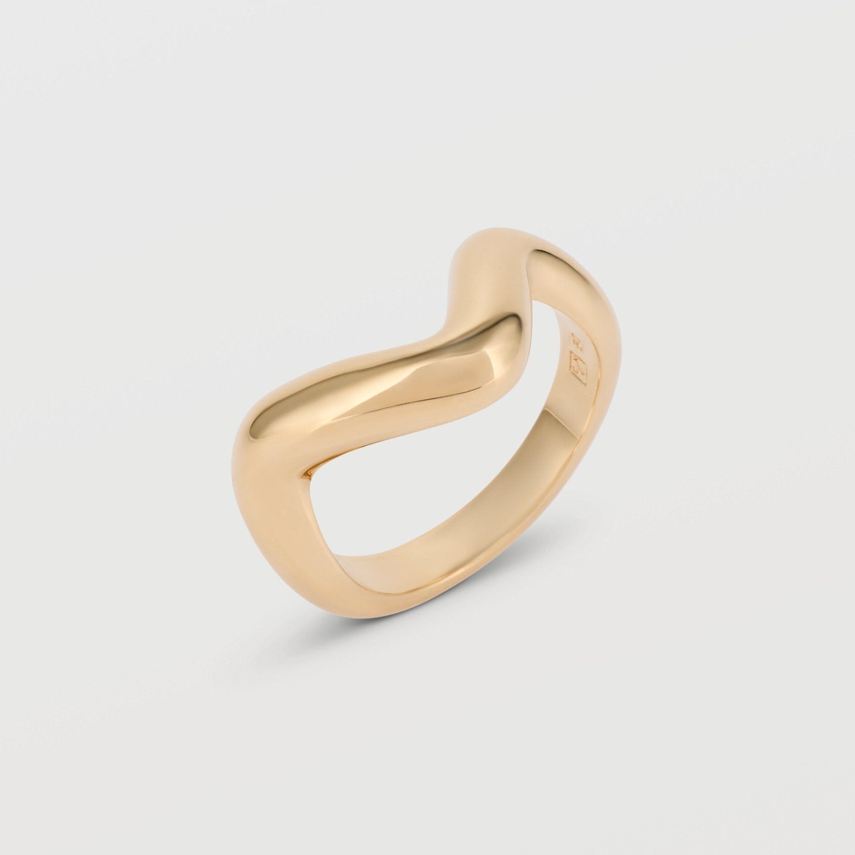 La bague Nour en plaqué or 18 carats a un design ondulé épuré et contemporain. Sa silhouette symétrique lui donne une allure moderne. Elle s'accorde parfaitement avec d'autres bagues pour un style audacieux.