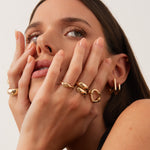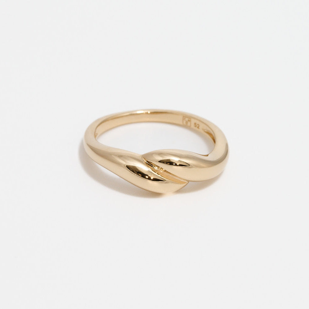 La bague Freya en plaqué or 18 carats affiche un motif torsadé au centre, tout en finesse. Son design épuré et élégant en fait un bijou facile à porter au quotidien, seul ou en accumulation.