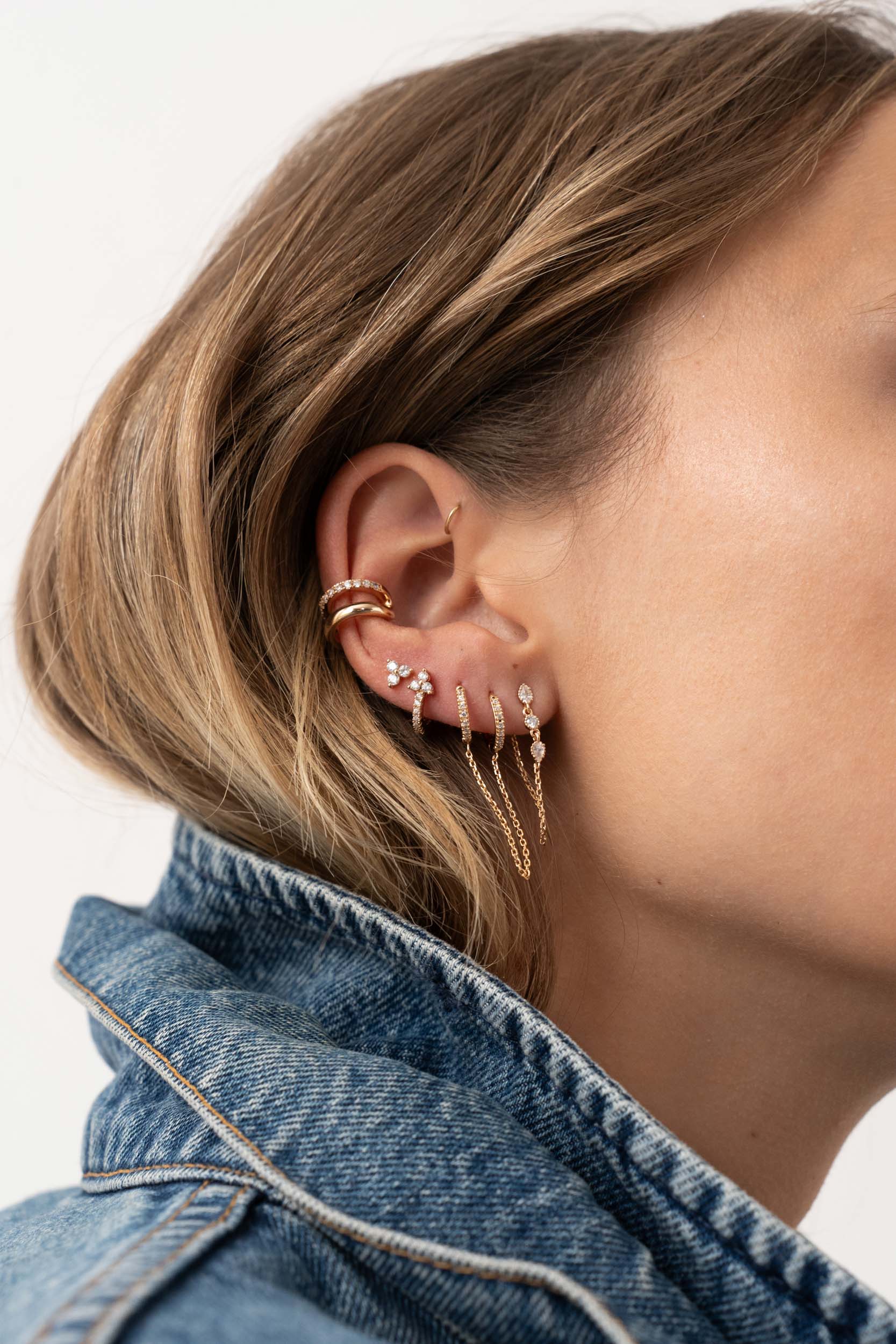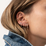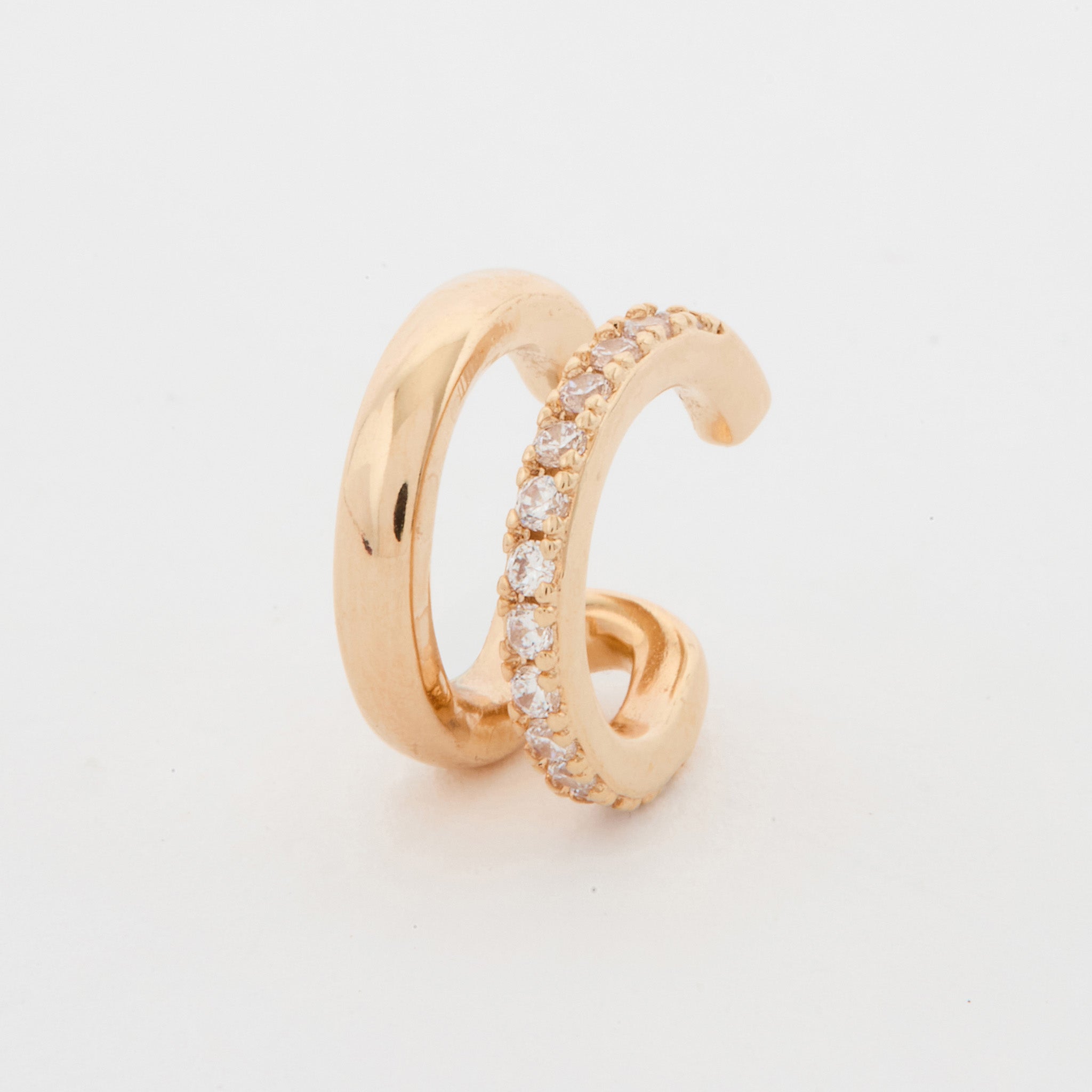 Le earcuff Karine en plaqué or 18 carats au design double anneau combine élégance et modernité. L'un des anneaux est lisse et brillant, l'autre est sertie de zirconiums non teintés créant un contraste raffiné. Cette bague d'oreille est facile à porter et ne nécessite pas de perçage.