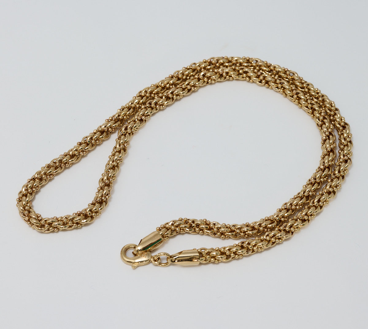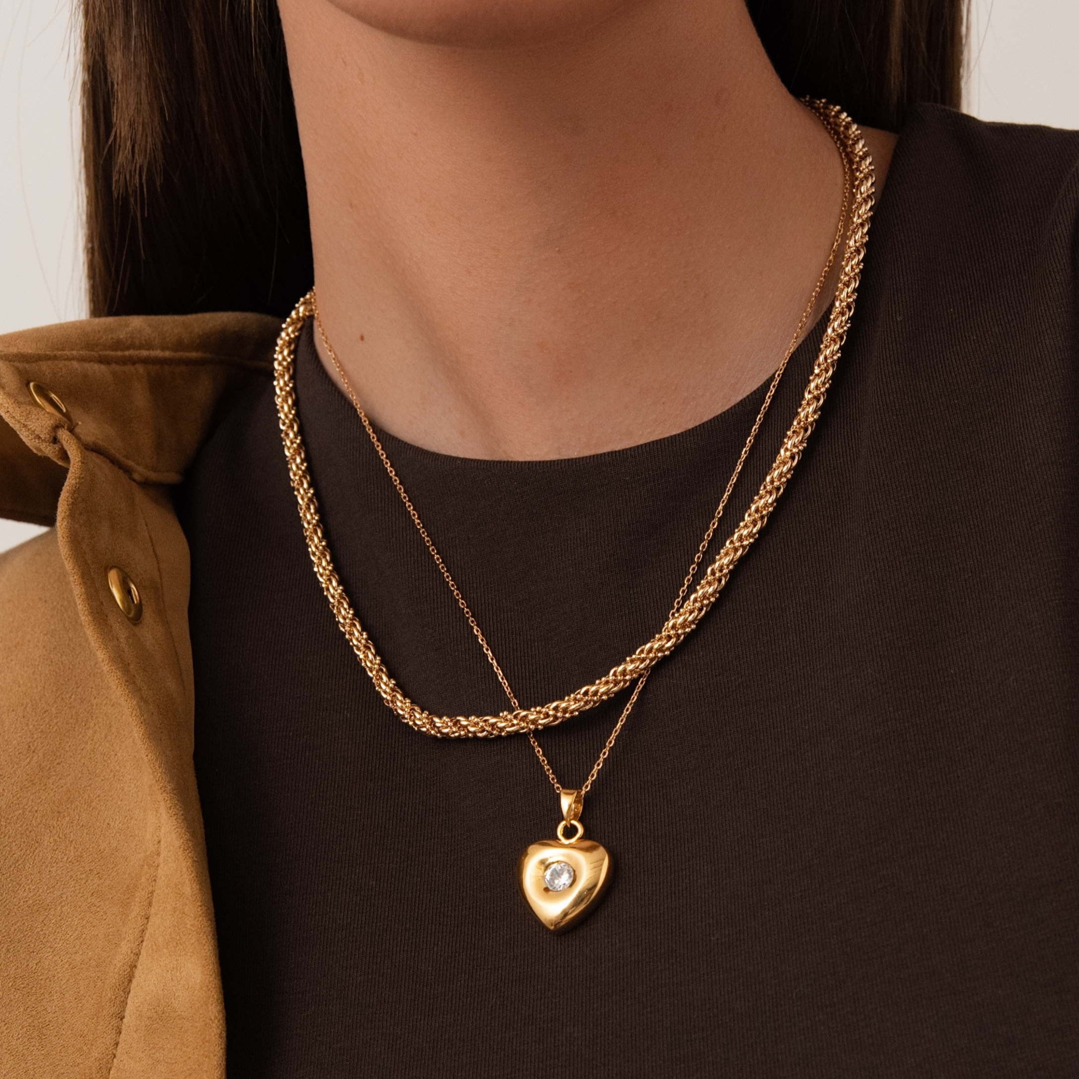 Le collier Naïa en plaqué or 18 carats est une chaîne épaisse à l’effet torsadé. Sa brillance et son allure vintage en font une pièce forte qui structure et habille le cou en un clin d’œil.