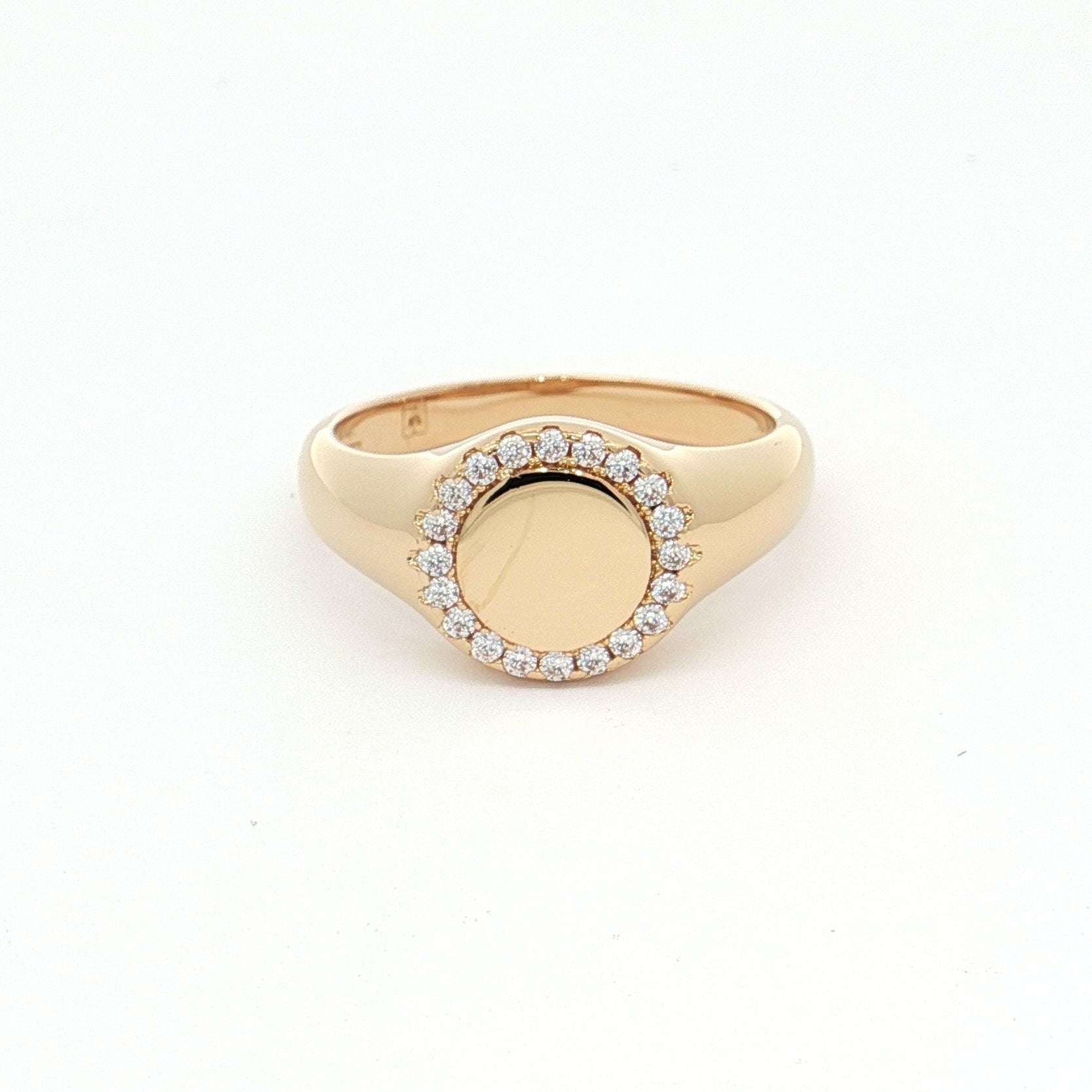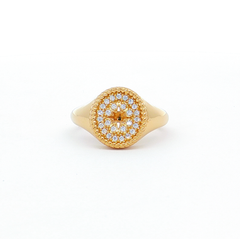 La bague Georgette en plaqué or 18 carats est une bague au charme intemporel à porter en chevalière ou pas. Son plateau rond lisse est entouré d’un cercle de zircons étincelants, pour un éclat raffiné et féminin. Parfaite en pinky ring ou portée seule pour un look élégant.