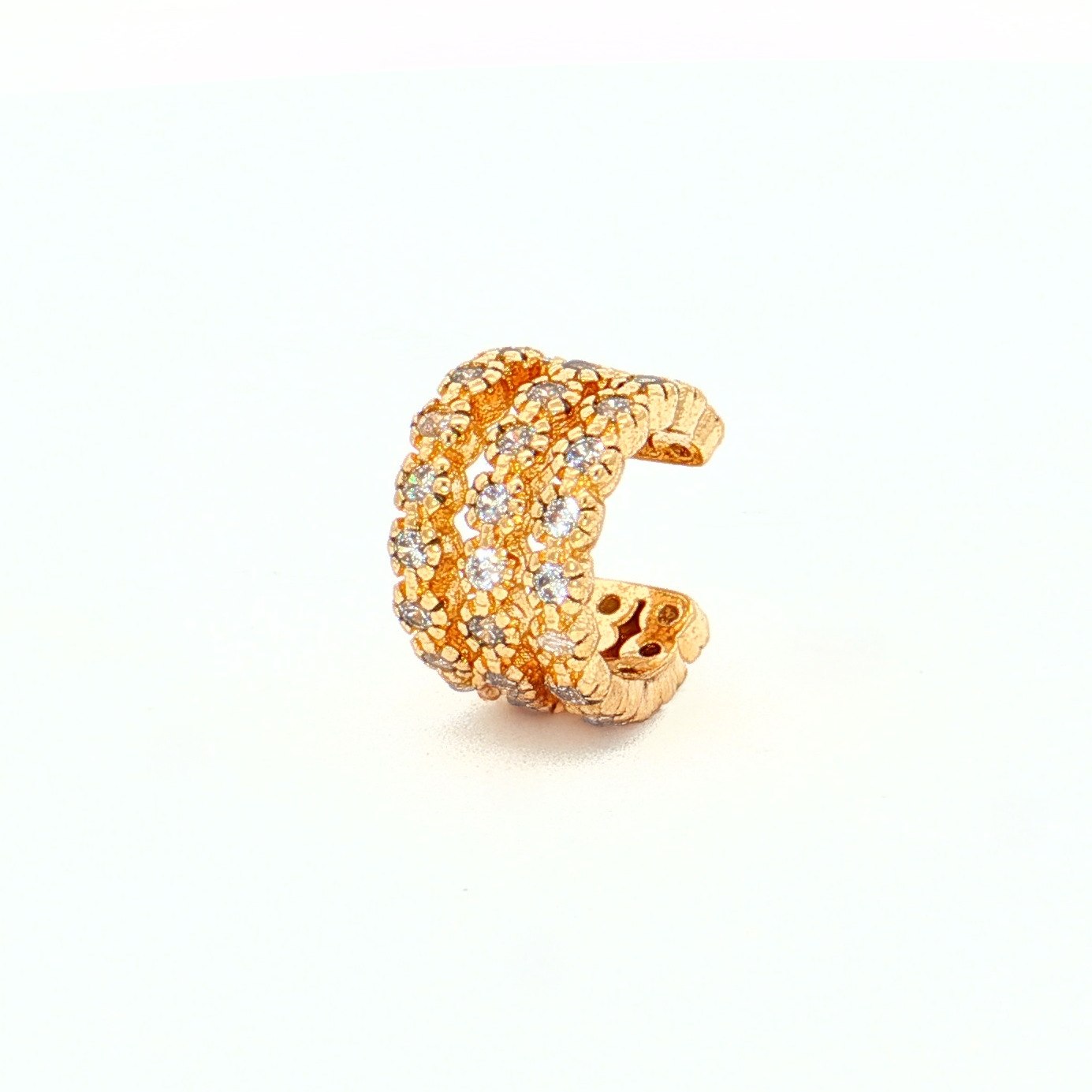 Le earcuff Elian en plaqué or 18 carats combine une texture dorée travaillée et une rangée de zirconiums transparents. Il habille l’oreille en un geste, sans piercing, et apporte une jolie dose d’éclat à vos compositions.