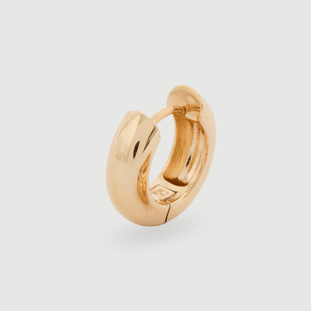 Les boucles d'oreilles Marlene en plaqué or 18 carats sont des créoles épaisses à la texture lisse. Leur structure creuse les rend légères et faciles à porter. On adore les porter en accumulation avec les créoles Lenny, Dora et Joy.