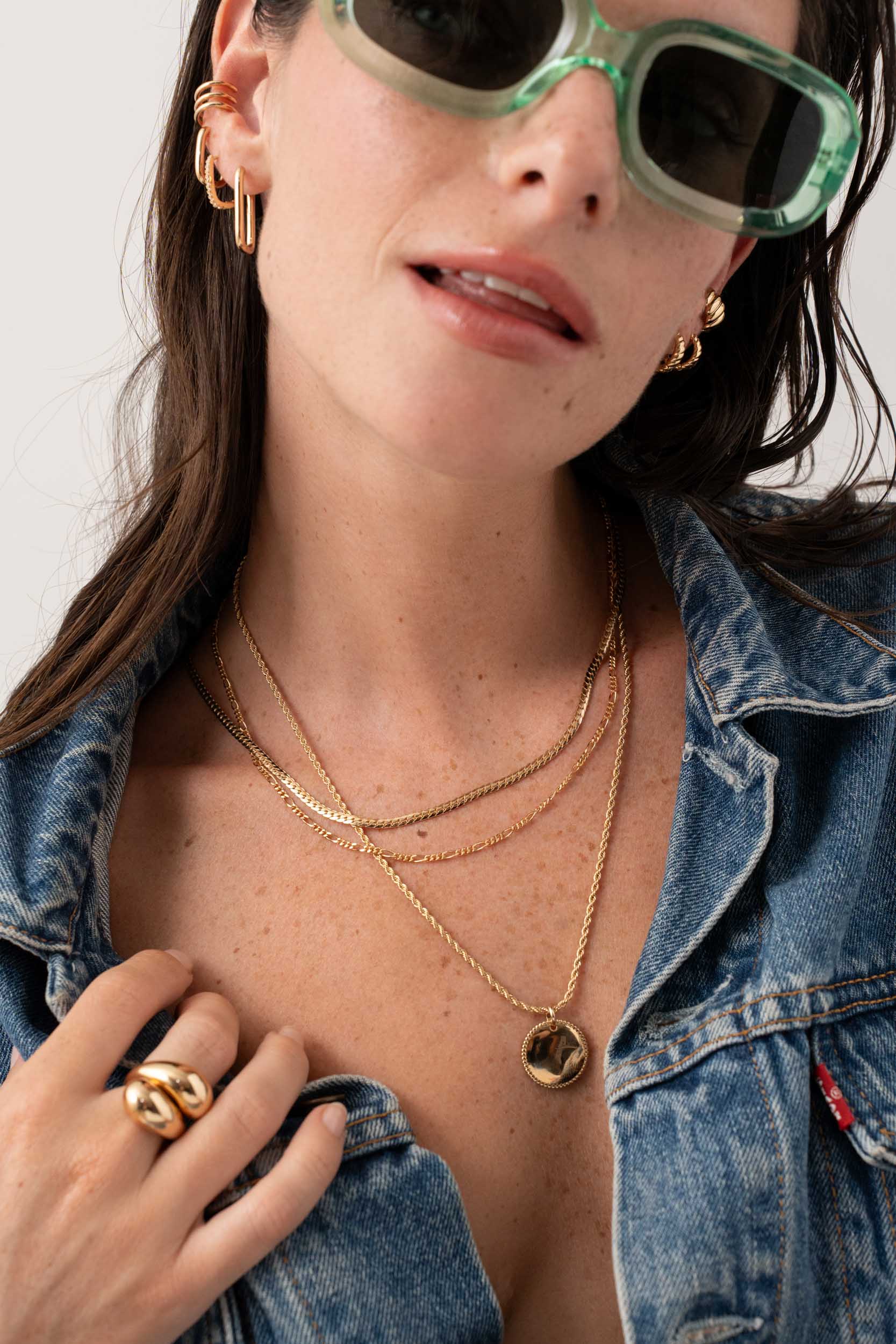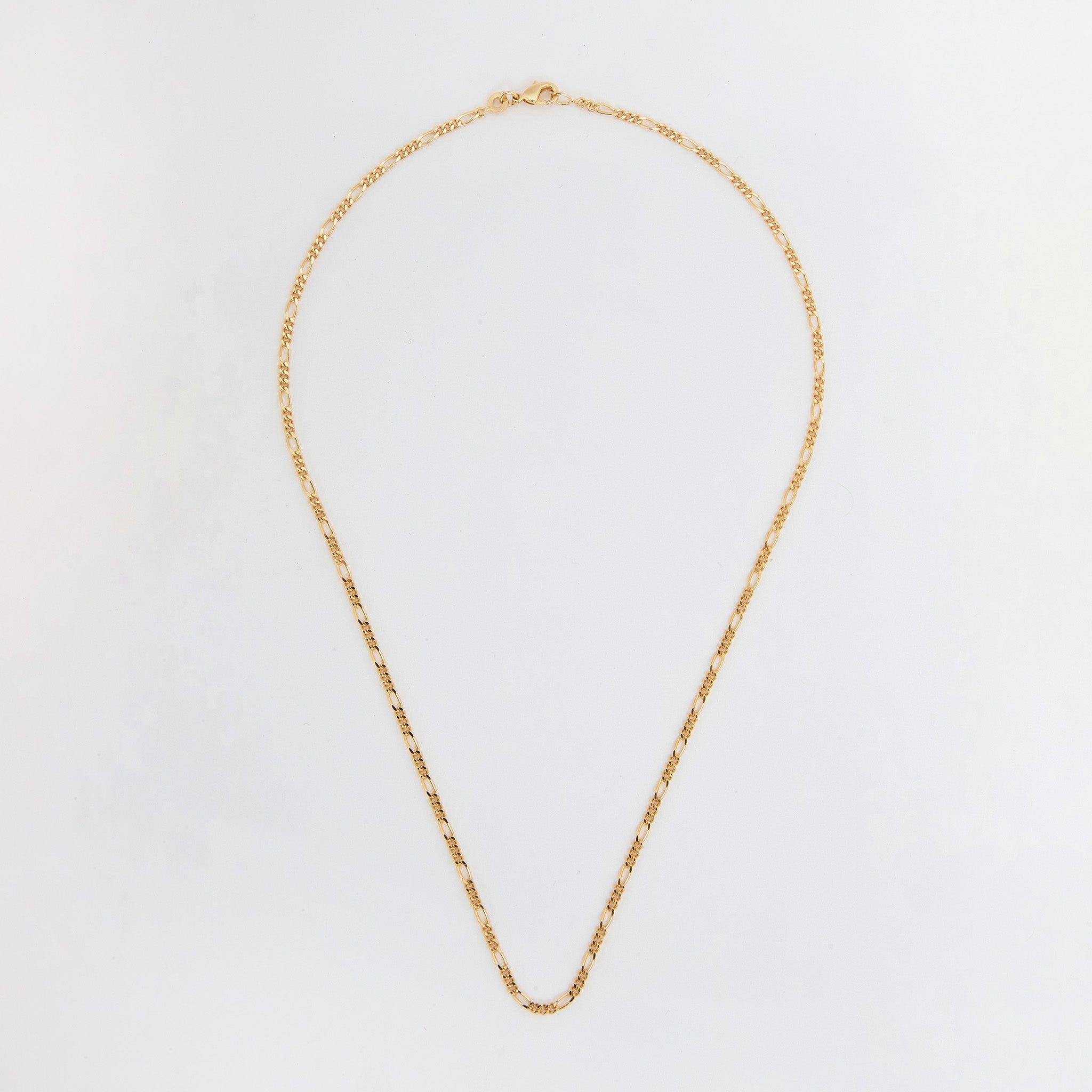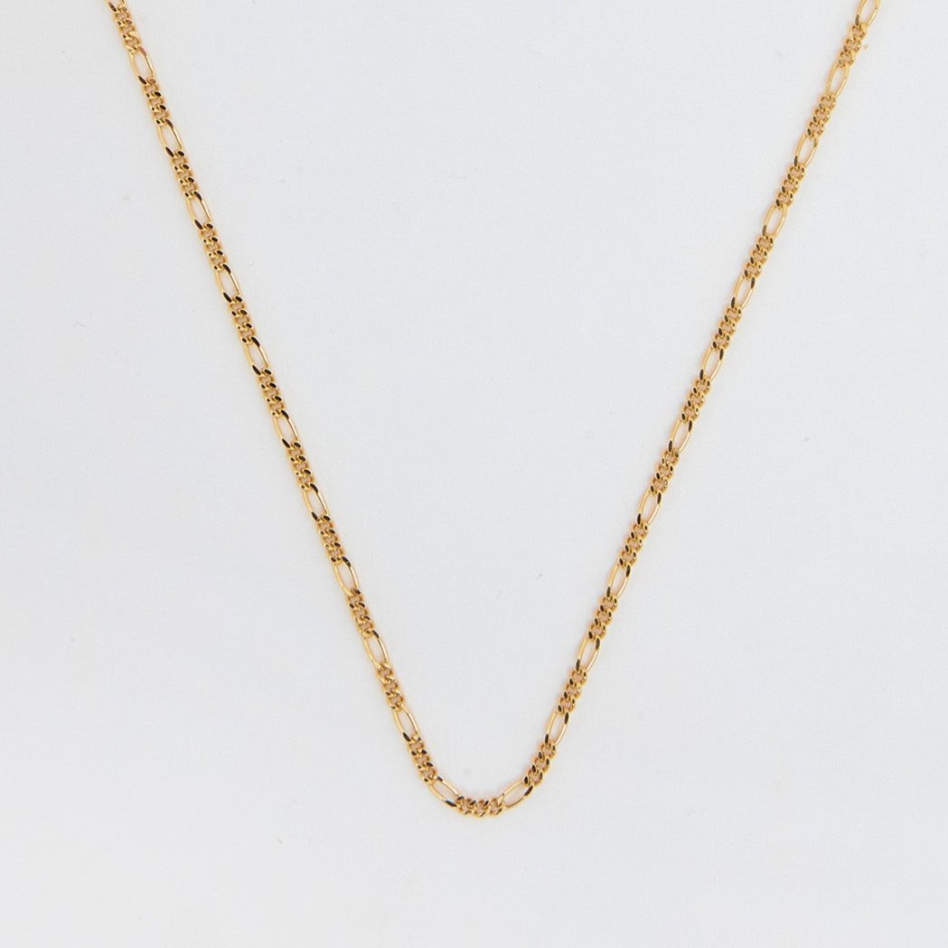 Le collier Josiane en plaqué or 18 carats est une maille Figaro. Elle est reconnaissable de par l'alternance de petites mailles de chaîne. C'est un incontournable à avoir dans sa boite à bijoux.