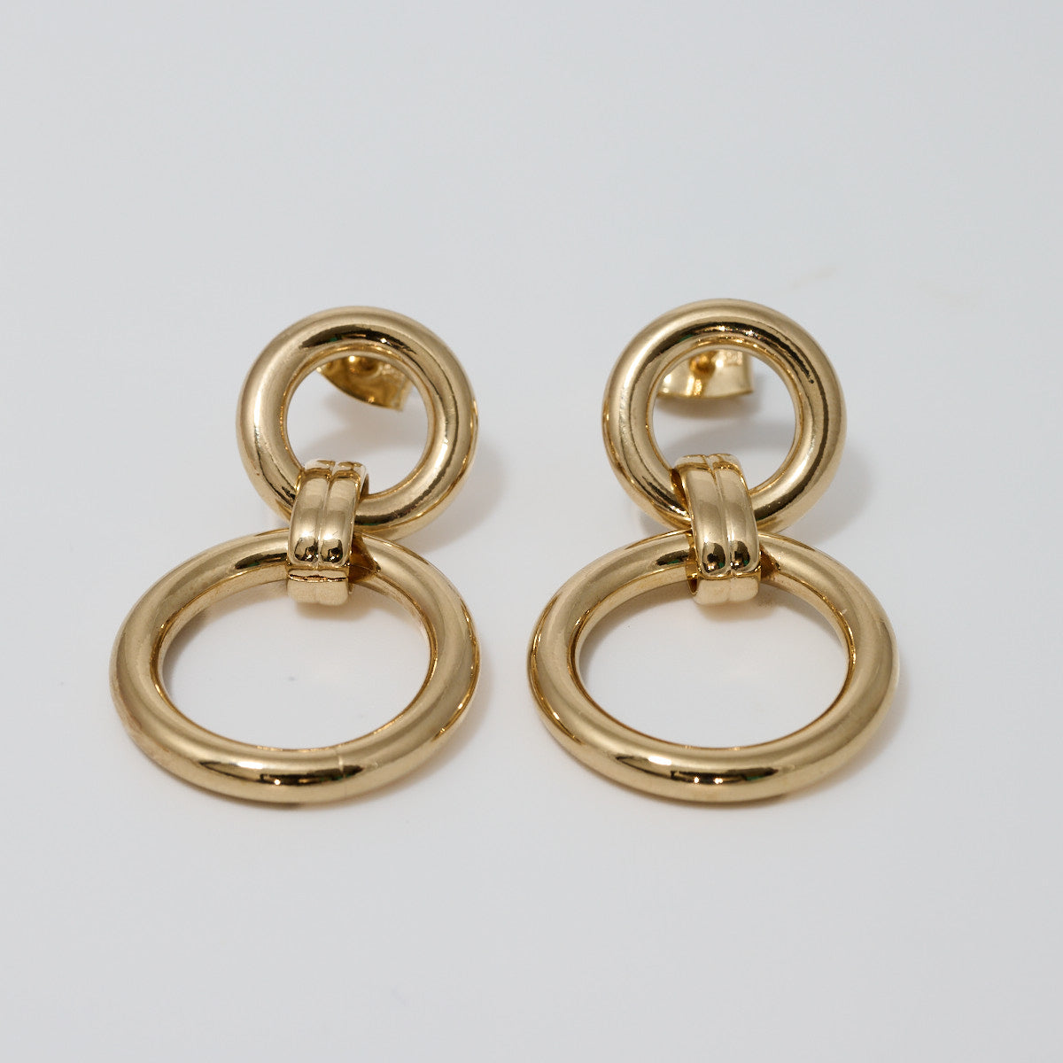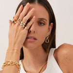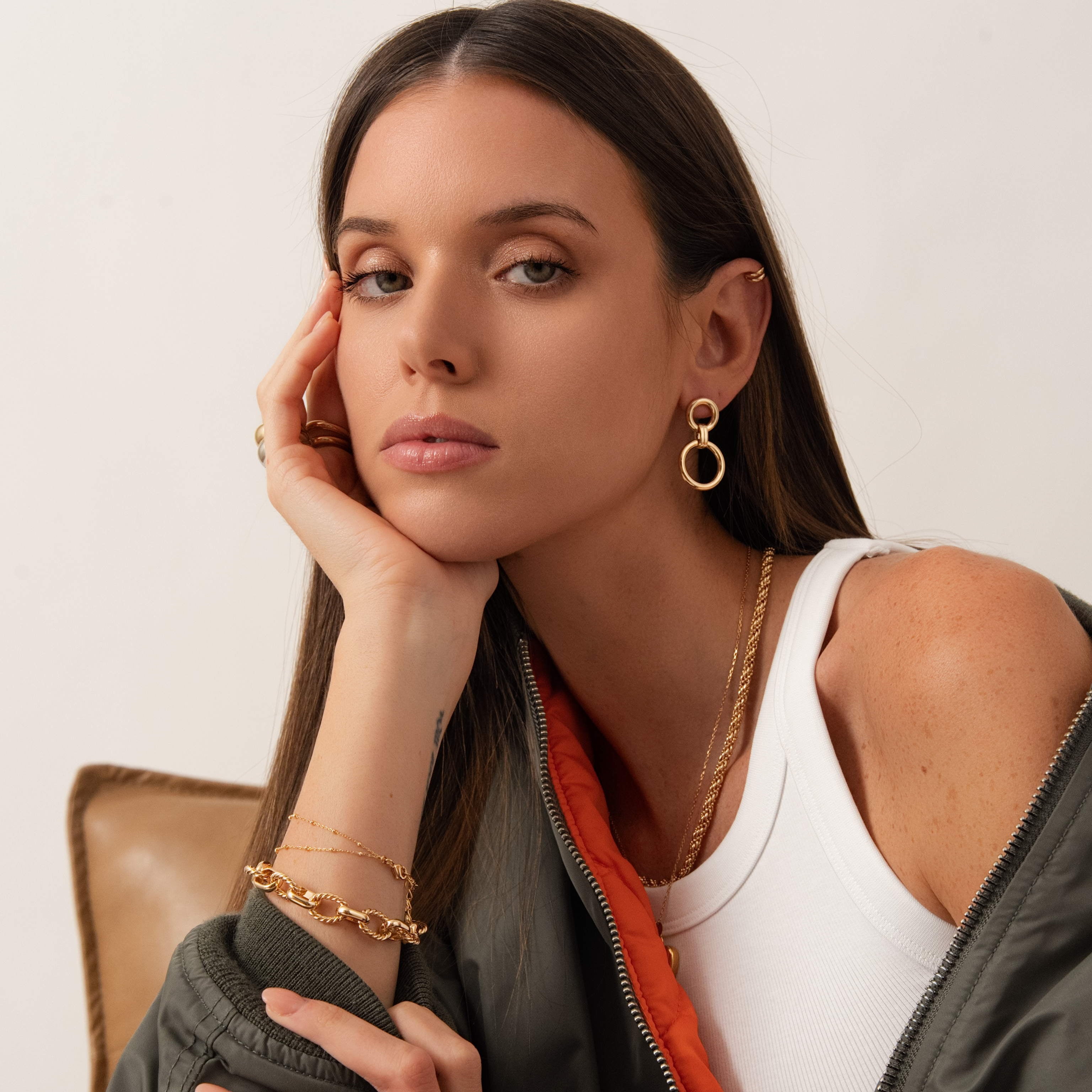 Les boucles d’oreilles Talia en plaqué or 18 carats sont composées de deux anneaux épais reliés entre eux. Leur design graphique et affirmé apporte une touche contemporaine à tous les looks.