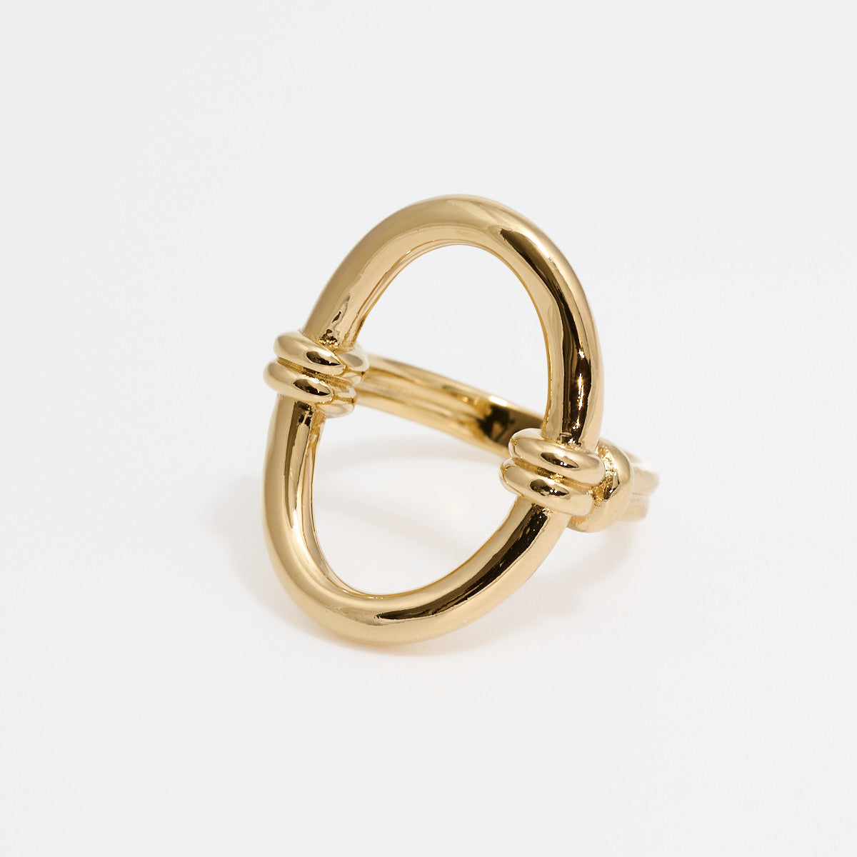 La bague Dune en plaqué or 18 carats présente deux anneaux entremêlés, aux lignes arrondies. Une bague graphique, moderne, tout en mouvement.