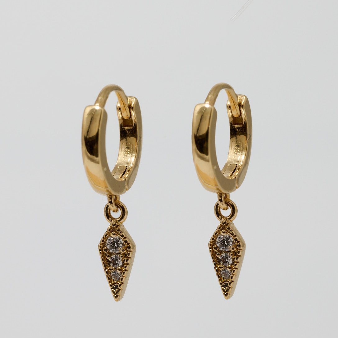 Les boucles d'oreilles Paola en plaqué or 18 carats est une mini-créole ornée d’un pendentif losange pavé de zircons. Une touche brillante et minimaliste, parfaite à porter seule ou en accumulation.