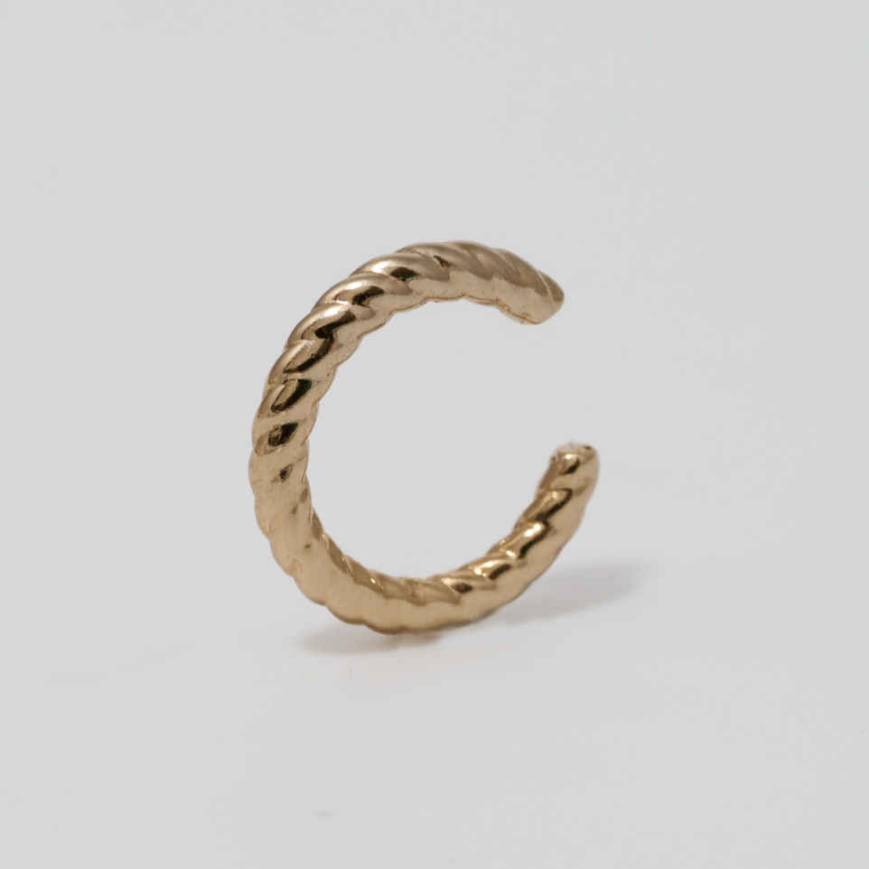 Le earcuff Zélie en plaqué or 18 carats a un design simple torsadé. C'est un faux piercing pour le conch pour les oreilles non percés. Il s'accorde avec la majorité des compositions de boucles d'oreilles.