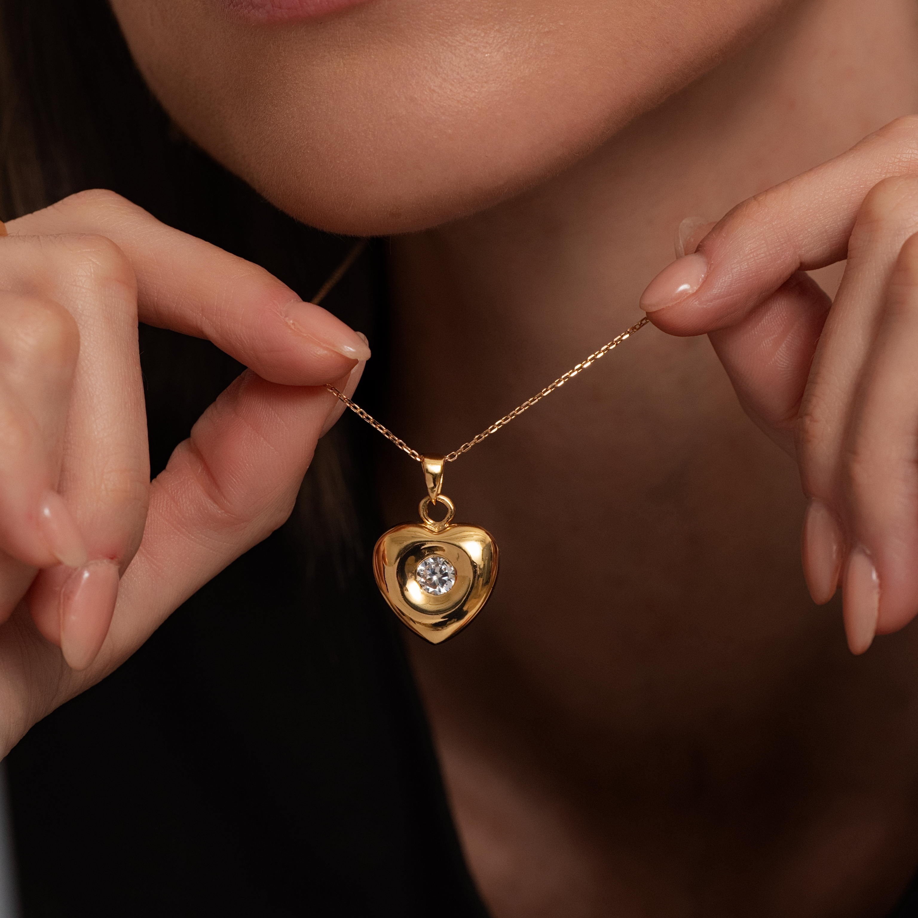 Le pendentif cœur en plaqué or 18 carats est sertie d'un zirconium en son centre.
