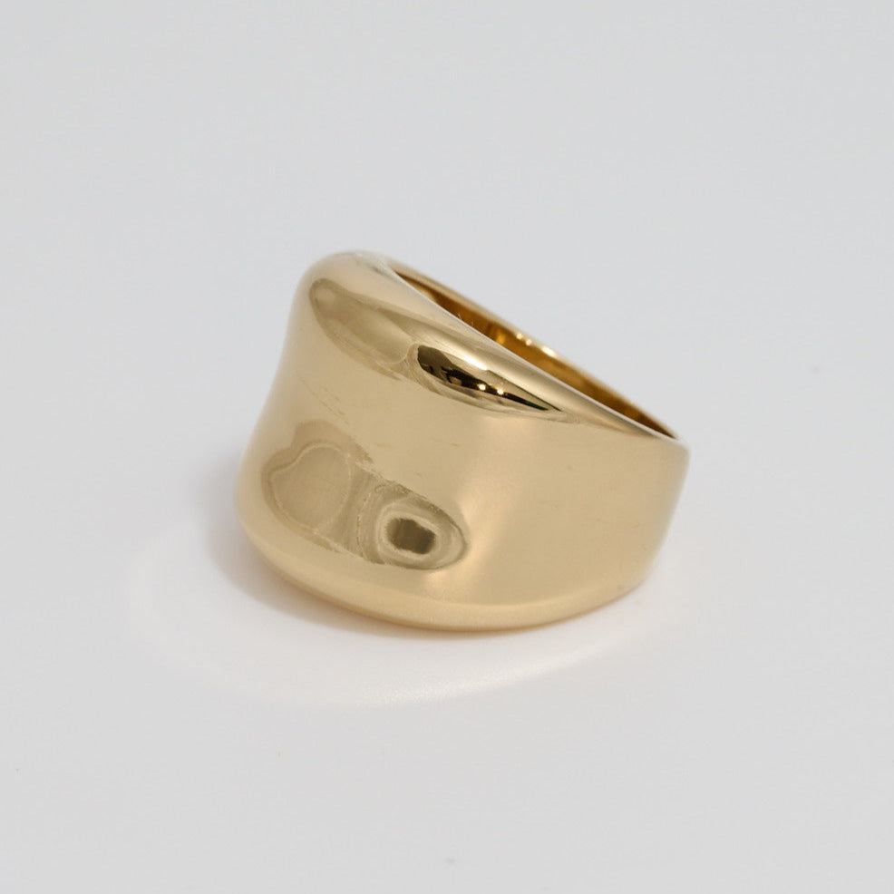 La bague Auria en plaqué or 18 carats est une bague épaisse au design bombé. Son allure sculpturale lui donne un style résolument contemporain. Une pièce forte, idéale à porter seule pour un effet bold et élégant.