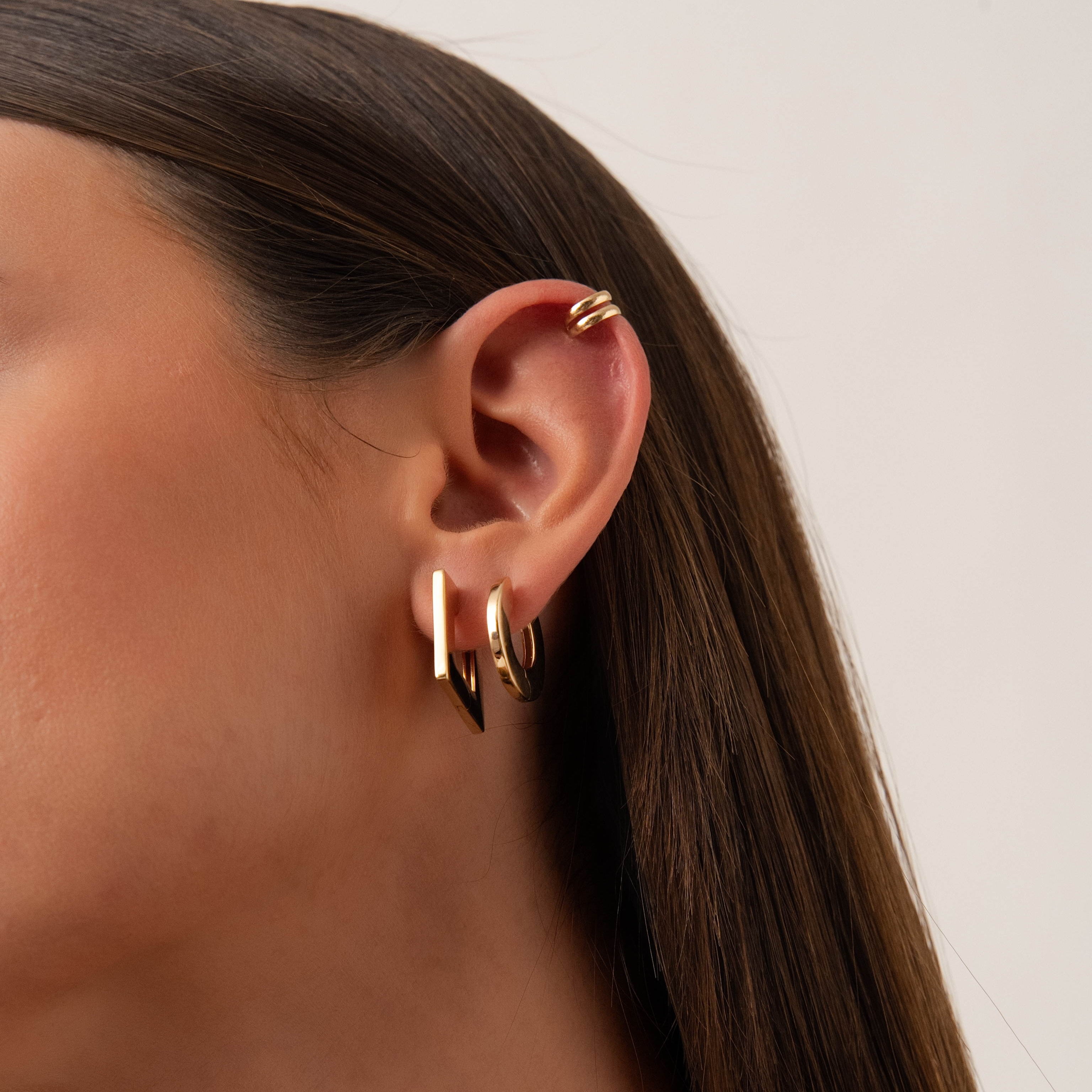 Les boucles d’oreilles Carré en plaqué or 18 carats adoptent une forme géométrique marquée. Leur silhouette carrée et épurée leur donne un style fort, parfait pour structurer un look.