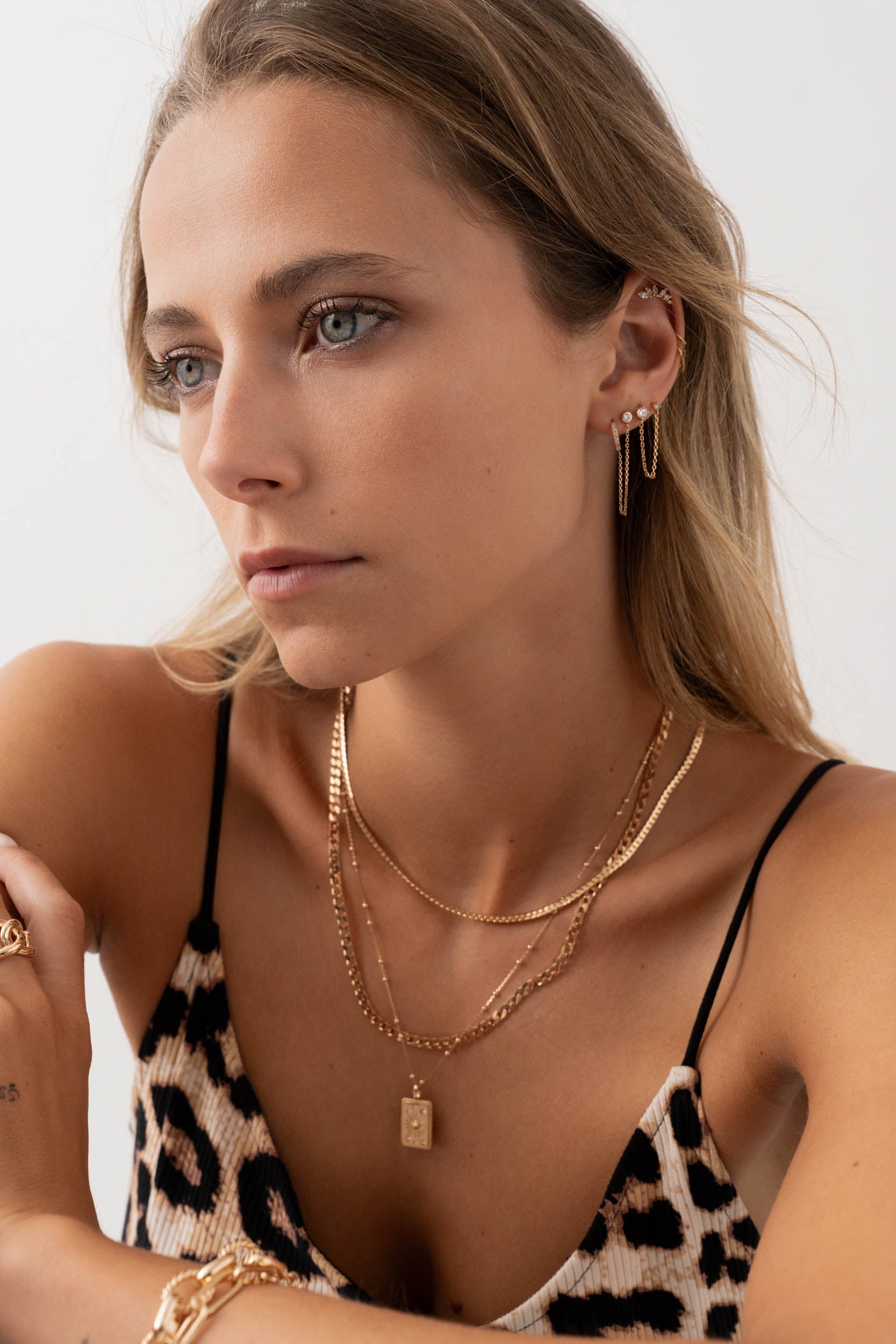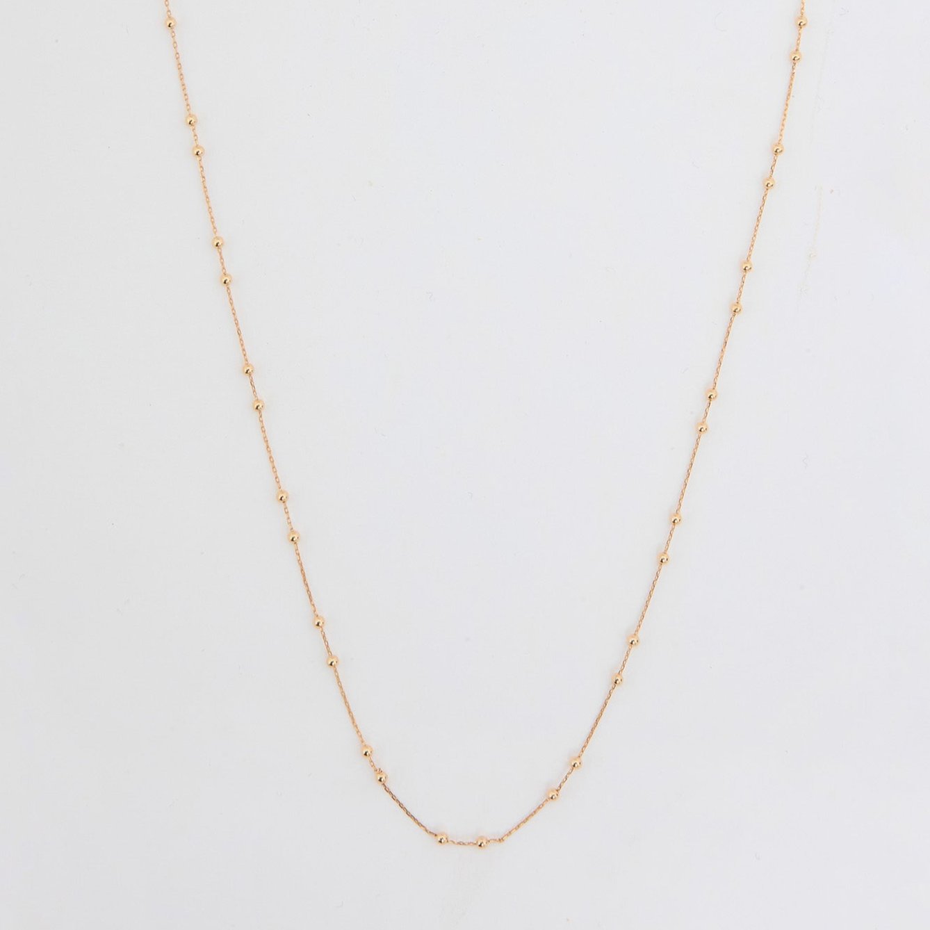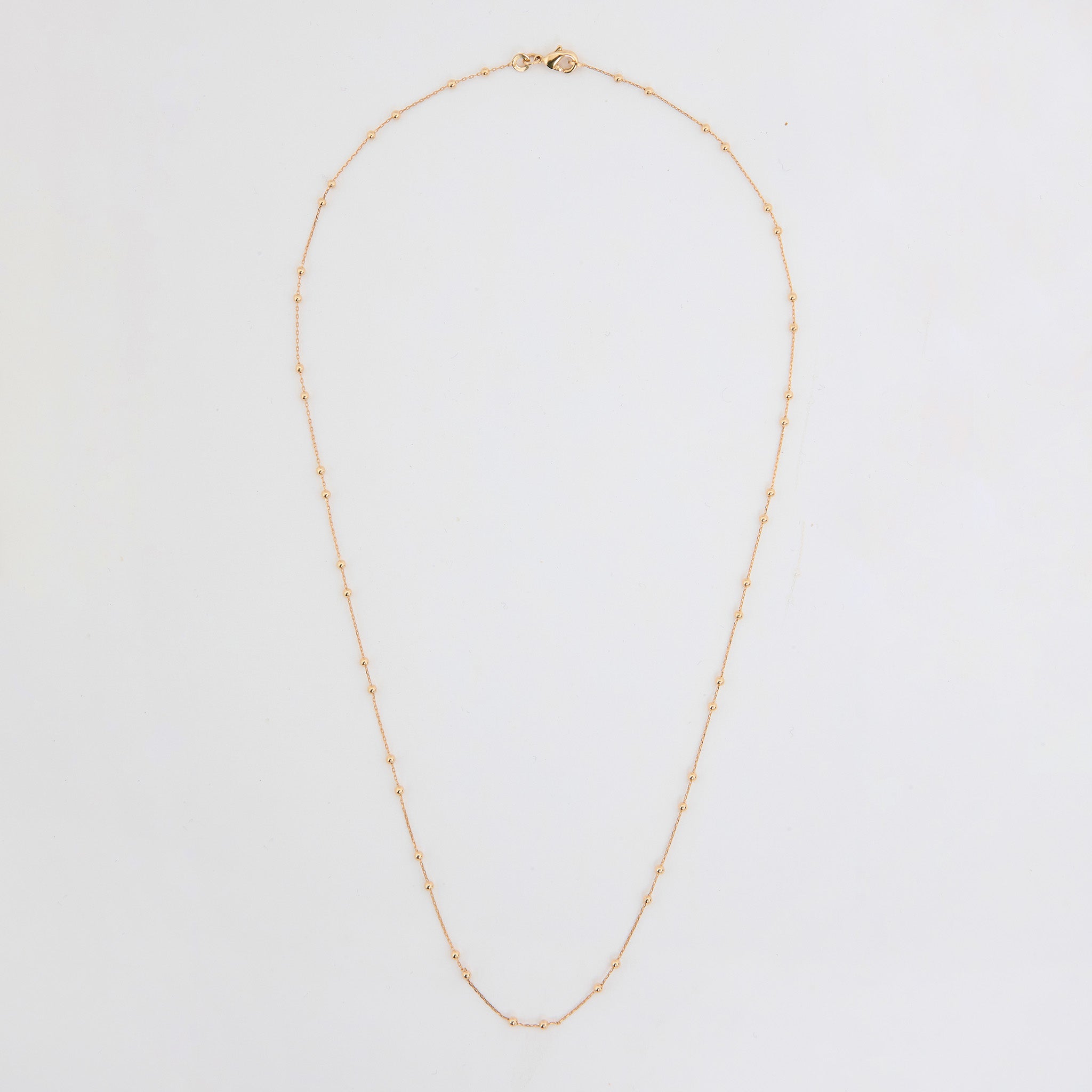 La chaîne Flo en plaqué or 18 carats est une chaîne fine avec des petites boules. Elle est très jolie portée en accumulation ou avec un pendentif.