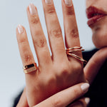 La bague Lys II en plaqué or 18 carats est une pinky ring fine et élégante. Son design géométrique minimaliste est rehaussé d’un petit zircon lumineux, pour une touche de brillance discrète. Idéale à porter seule ou en accumulation avec la bague Lys sertie.